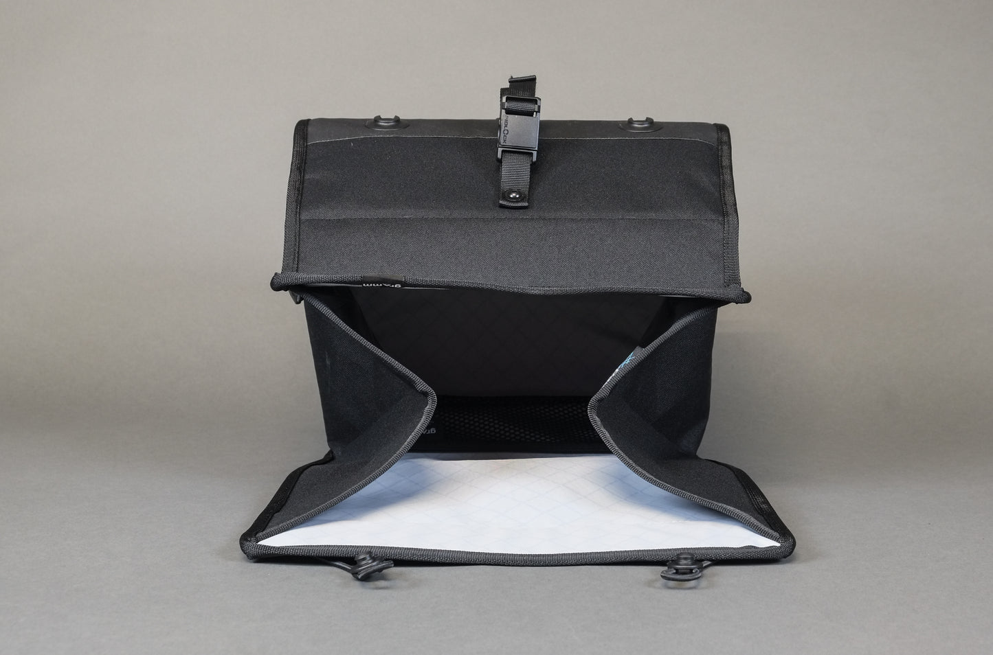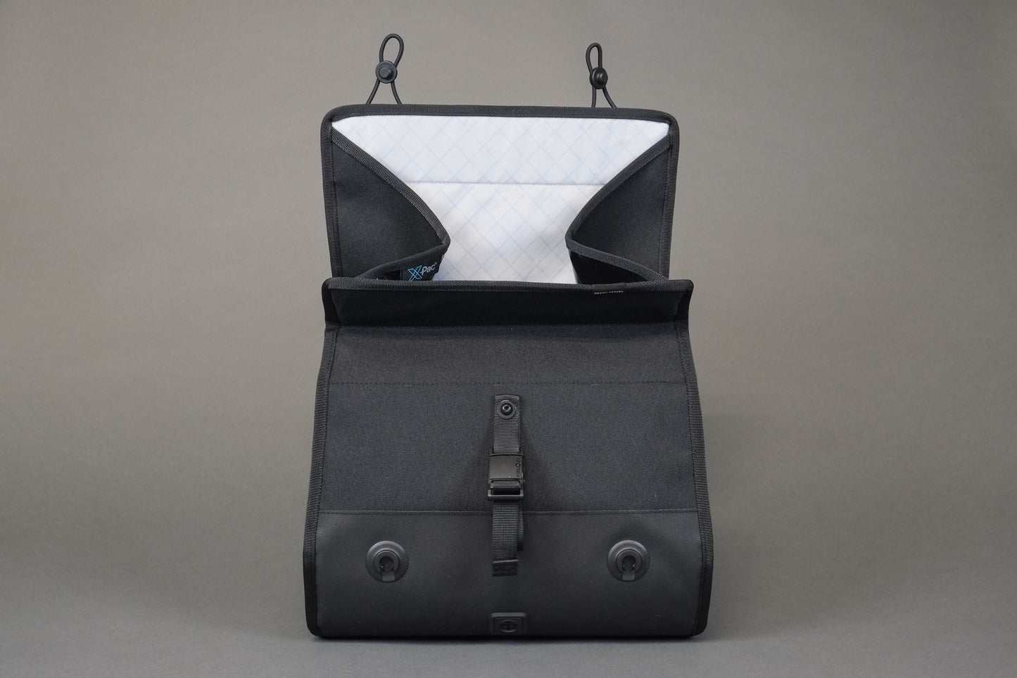 The Grill Bag is made from super durable Dimension Polyant Xpac Fabric and it features our unique origami style fold-top-lid which combines the best of roll top closures and classic lid top designs. It opens and closes in a second, thanks to the genius Fidlock Snap magnetic fasteners.